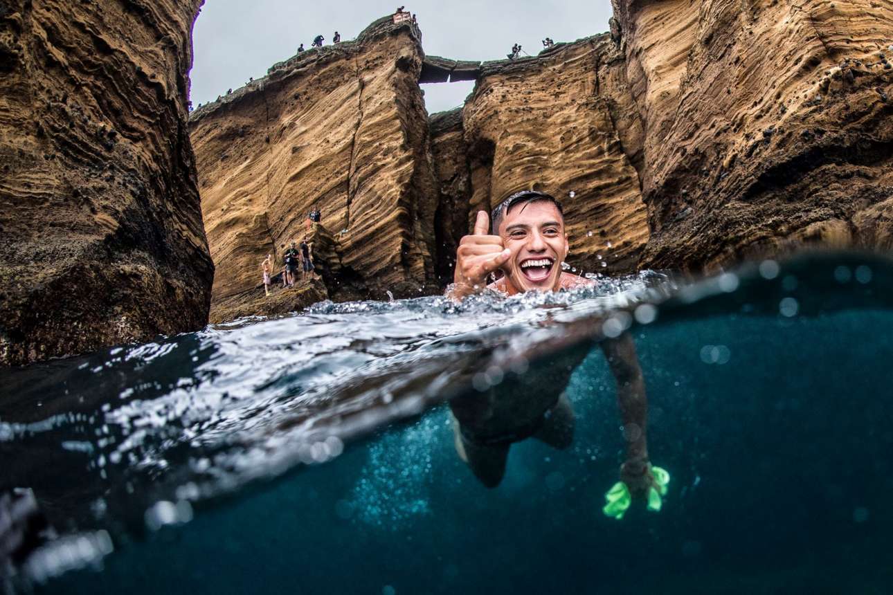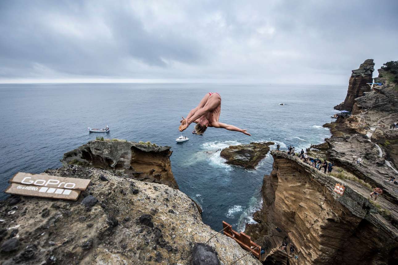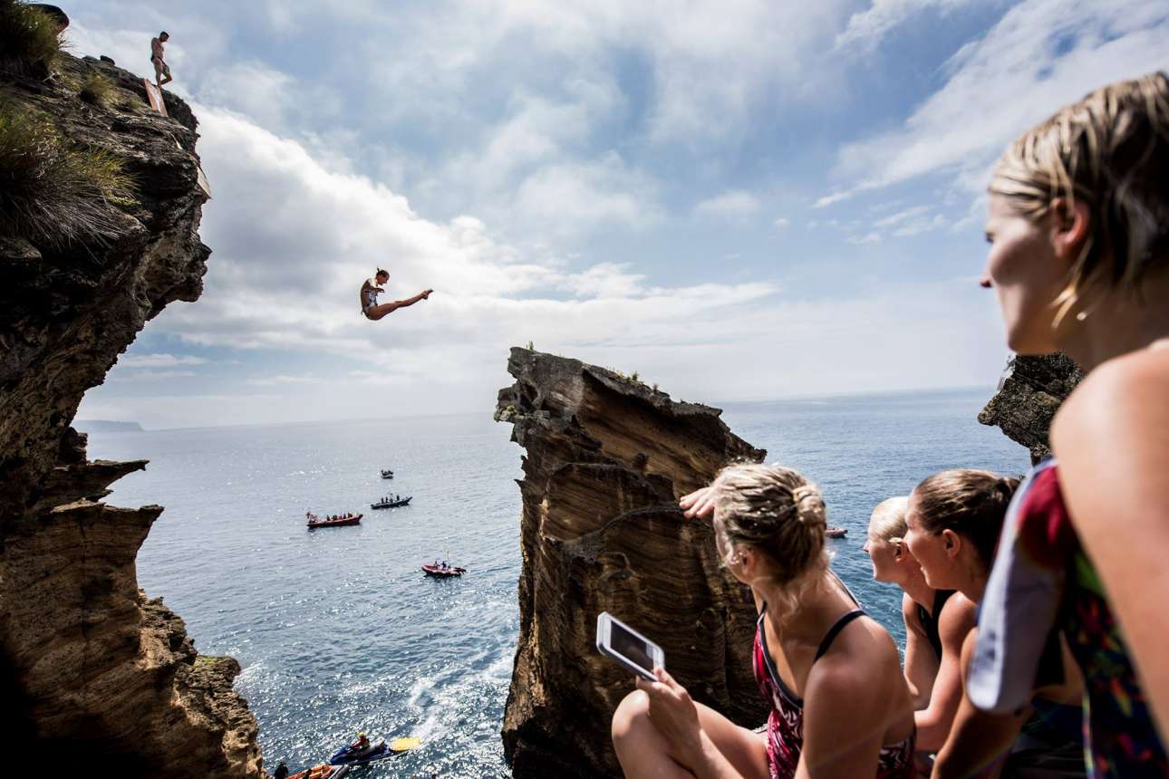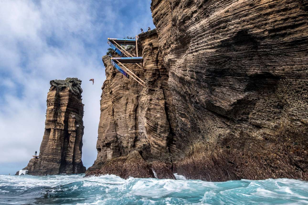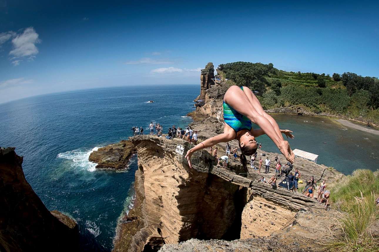 Αθλητές από όλον τον κόσμο, από τη Βραζιλία και την Αυστραλία μέχρι τη Βοσνία – Ερζεγοβίνη, συμμετείχαν στον διαγωνισμό κατάδυσης από βράχους που διοργανώνει η εταιρεία Red Bull για έβδομη συνεχόμενη χρονιά. Το Red Bull Cliff Diving διεξάγεται κάθε φορά σε διαφορετικά, επιλεγμένα μέρη ανά τον κόσμο, με σειρά να παίρνουν φέτος οι Αζόρες και οι απόκρημνοι βράχοι του νησιού Σάο Μιγκέλ. Οι εντυπωσιακές βουτιές στον Ατλαντικό ωκεανό από τα 20 μέχρι και τα 27 μέτρα προσέφεραν ένα απίστευτο θέαμα στους λίγους τυχερούς που μπόρεσαν να το παρακολουθήσουν από τις εκατό βάρκες που είχαν συγκεντρωθεί στο σημείο