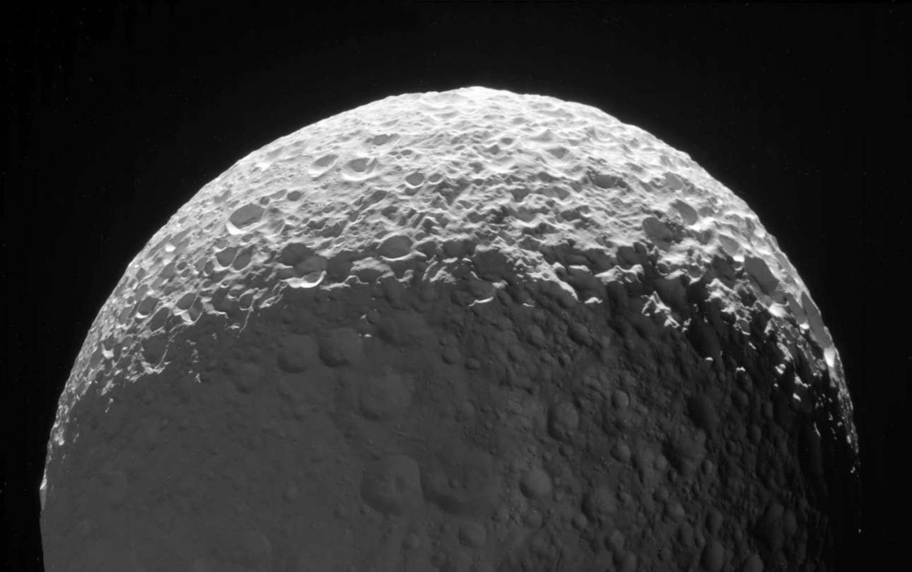 Το μικροσκοπικό - πλάτους 396 χλμ - παγωμένο φεγγάρι Μίμας, από κοντά. Θυμίζει μπαλάκι του γκολφ