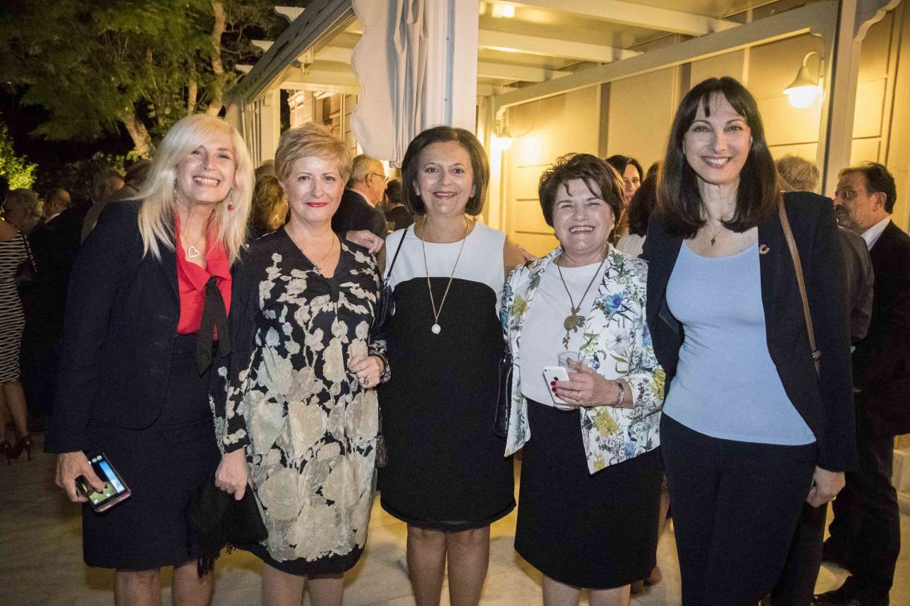 Οι βουλευτίνες της συμπολίτευσης σε μια αναμνηστική φωτογραφία από το πάρτι. Δεξιά η αν. υπουργός Τουρισμού Ελενα Κουντουρά