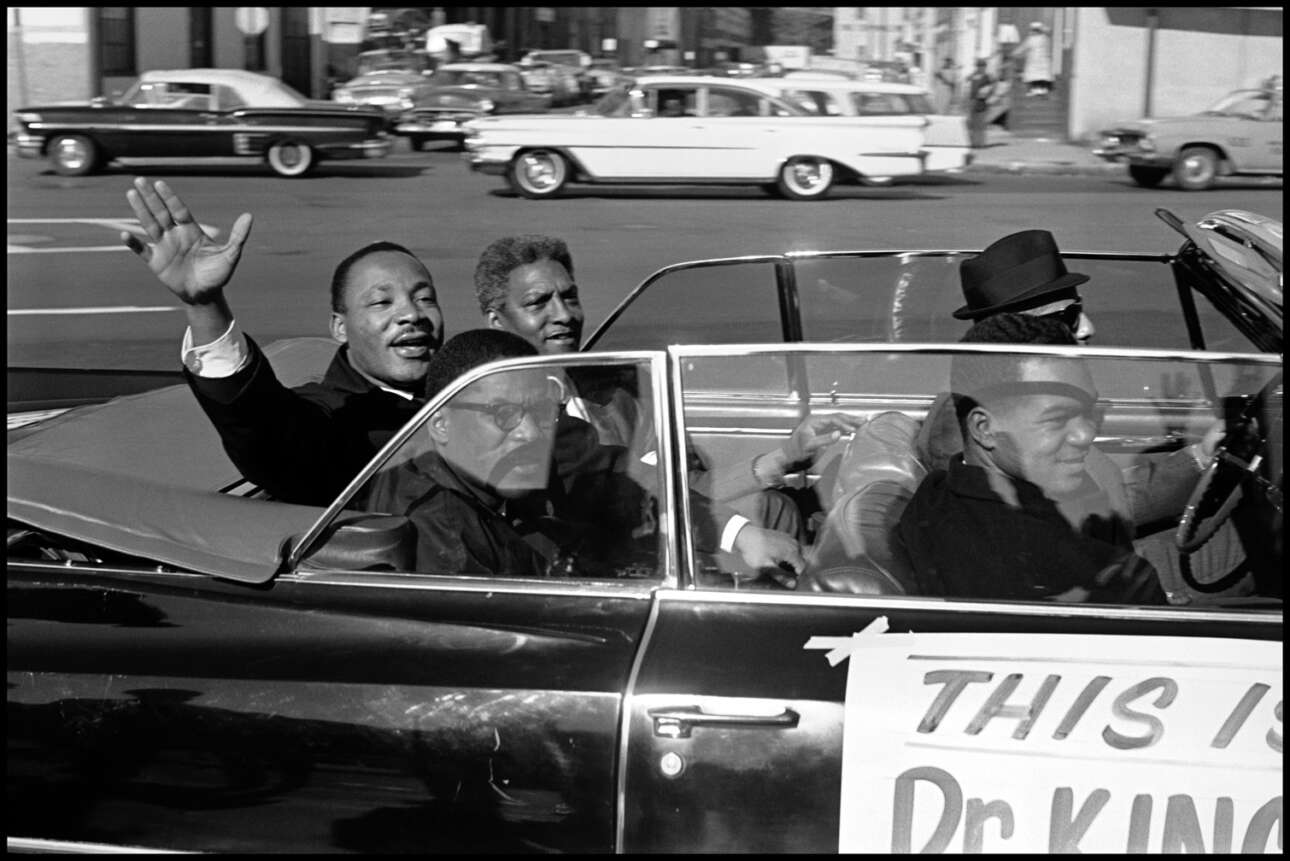 Ο Μάρτιν Λούθερ Κινγκ σε επίσκεψη του στη Βαλτιμόρη, το 1964. Σύμφωνα με τον Λέοναρντ Φριντ, «υπάρχουν δύο σημαντικά στοιχεία στη φωτογραφία: ο χρόνος και η αλήθεια. Ο χρόνος είναι σφραγισμένος, όπως ήταν. Οι φωτογραφίες δεν μπορούν να επαναληφθούν. Μένουν για πάντα σε μια στιγμή στον χρόνο»
