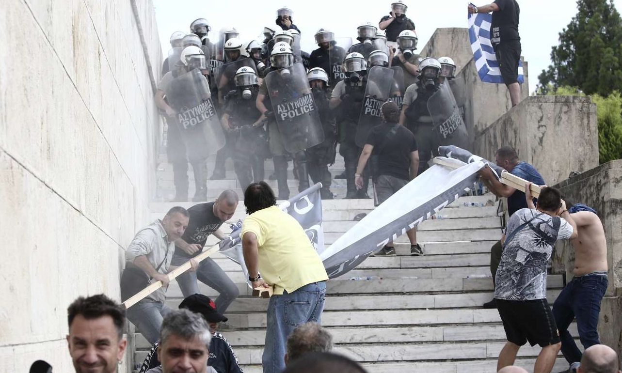Το πλήθος επιχείρησε να ανεβεί τα σκαλιά δίπλα από το Μνημείο του Αγνωστου Στρατιώτη