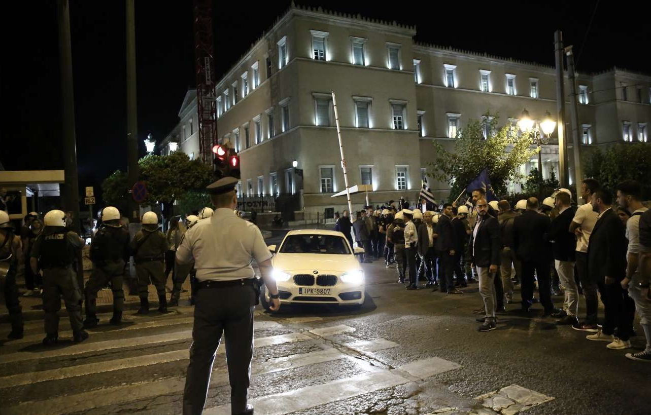 Χρειάστηκαν ισχυρές δυνάμεις των ΜΑΤ για να μπορέσουν να φύγουν οι βουλευτές με τα αυτοκίνητά τους από τη Βουλή, μετά το τέλος της ψηφοφορίας