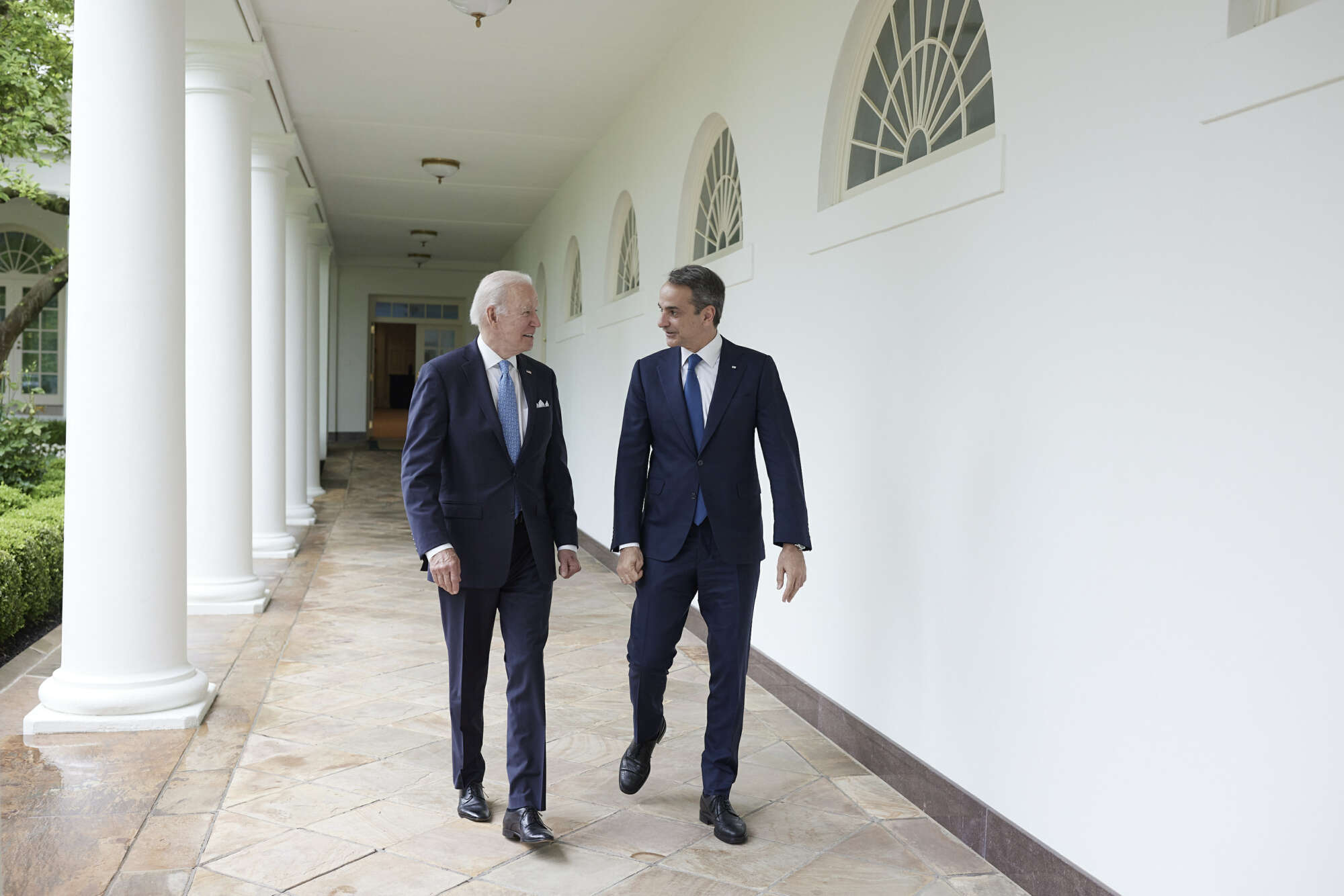 Χαλαρή συζήτηση για Μπάιντεν και Μητσοτάκη ενώ περπατούν στη Δυτική Πτέρυγα του Λευκού Οίκου