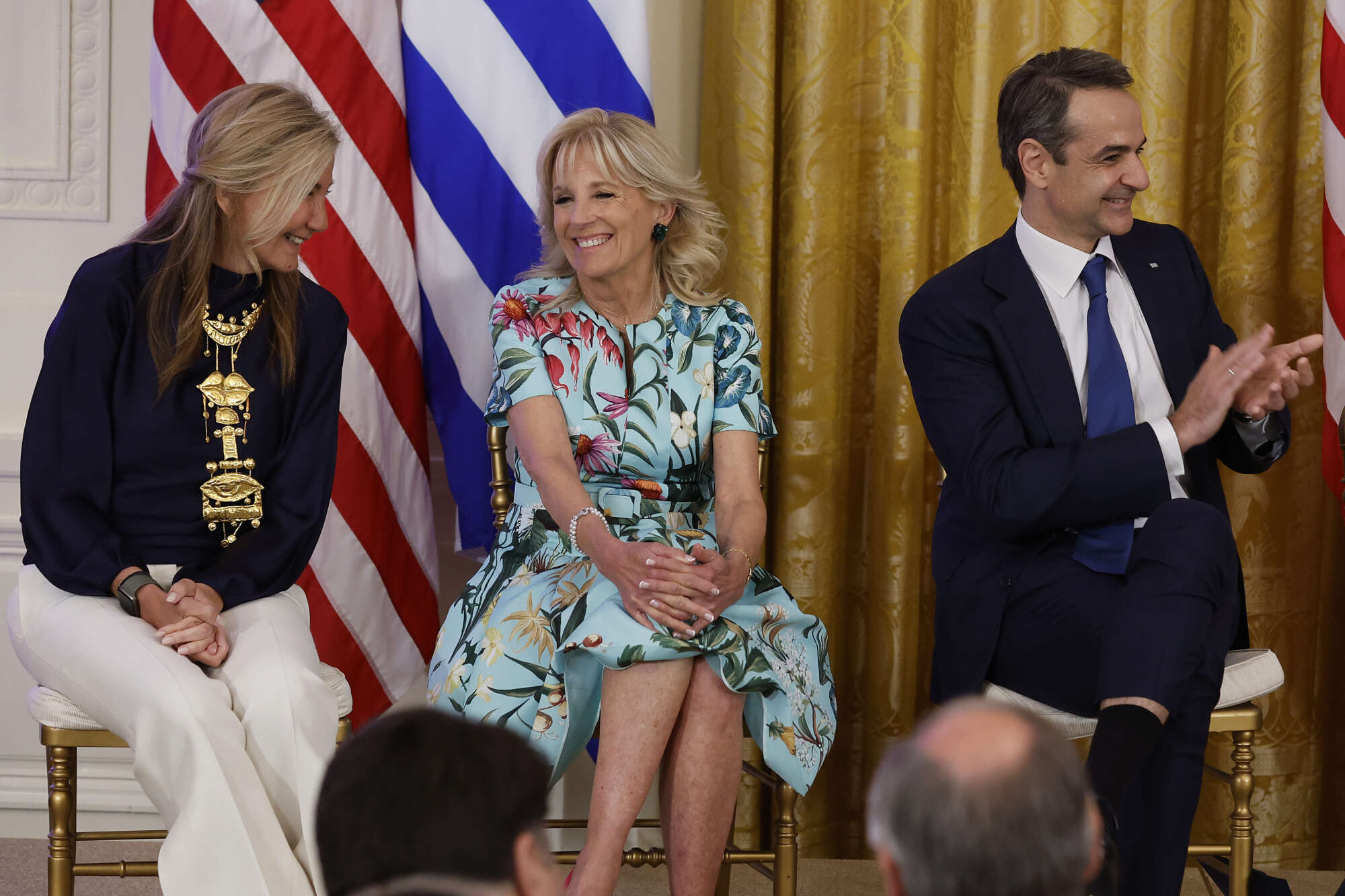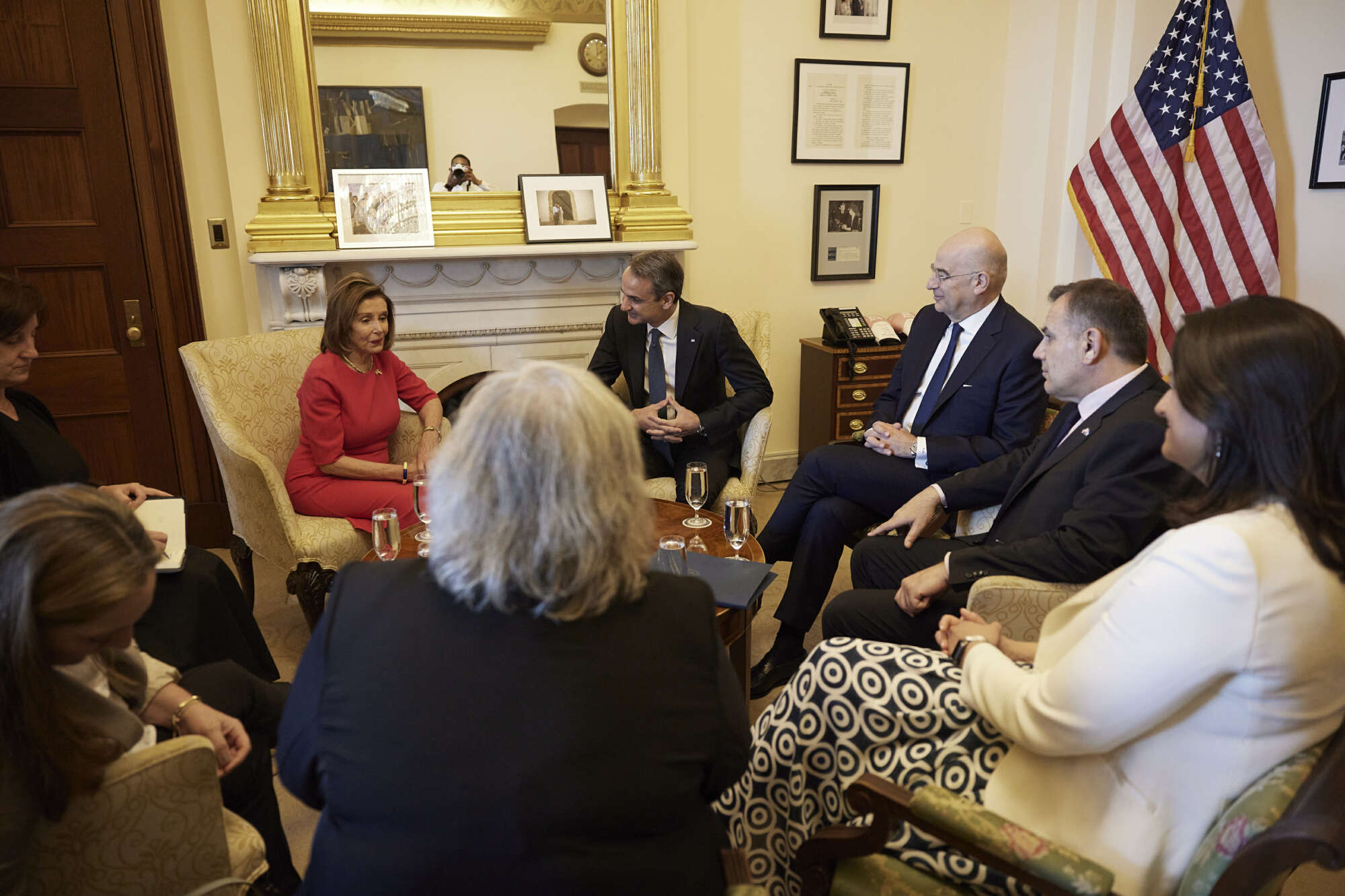 Την ιστορική ομιλία Μητσοτάκη στο Κογκρέσο χειροκρότησαν η αντιπρόεδρος των ΗΠΑ, Κάμαλα Χάρις, και η Πρόεδρος της Βουλής των Αντιπροσώπων, Νάνσι Πελόζι. Οι δύο γυναίκες κατέχουν τα δύο υψηλότερα αξιώματα του αμερικανικού πολιτικού συστήματος μετά από εκείνο του Προέδρου