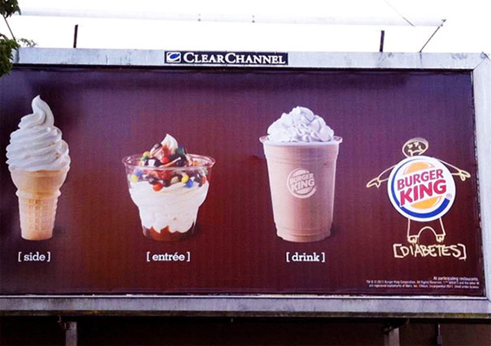 Το logo της αλυσίδας Burger King μεταμορφώνεται σε έναν υπέρβαρο κύριο με διαβήτη. Μάλλον φταίνε όλα τα γλυκά που διαφημίζει η εταιρεία...