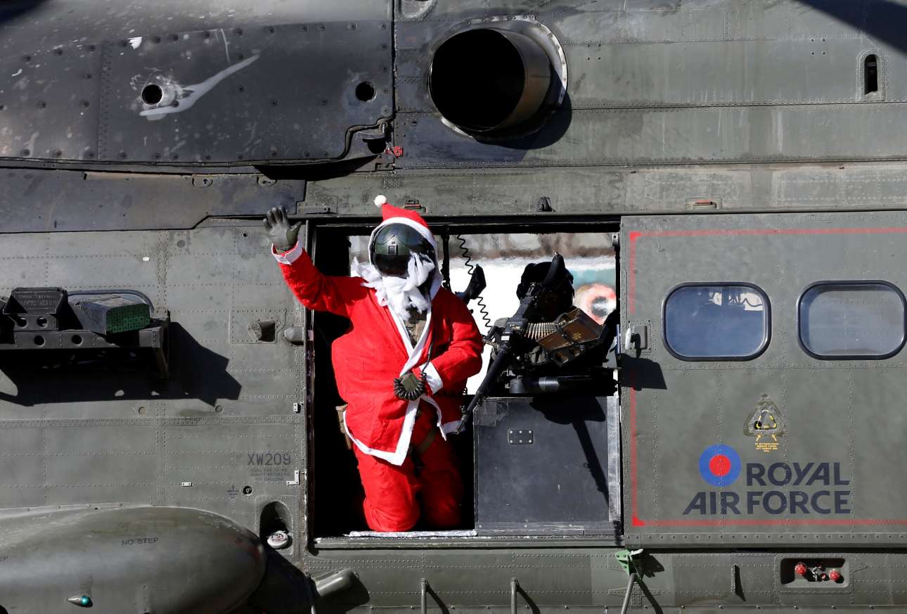 Βρετανός πεζοναύτης, ντυμένος σαν Αγιος Βασίλης, χαιρετά τους συναδέλφους του στη βάση της διεθνούς δύναμης στην Καμπούλ του Αφγανιστάν