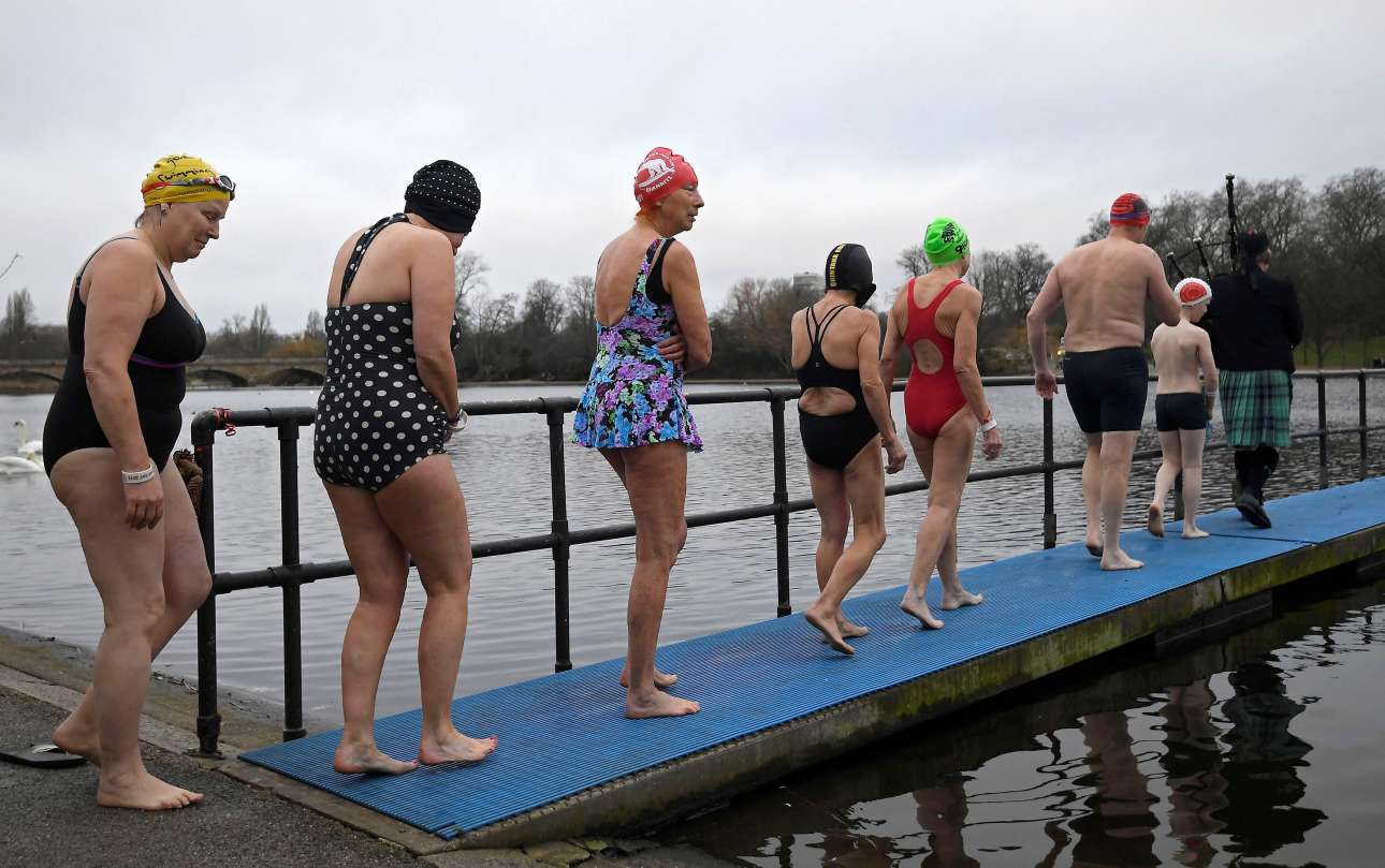 Αψηφώντας το κρύο, μικροί και μεγάλοι σπεύδουν στη λίμνη Σέρπεντιν του Χάιντ Παρκ προκειμένου να πάρουν μέρος στην ετήσιο αγώνα κολύμβησης ανήμερα Χριστούγεννα