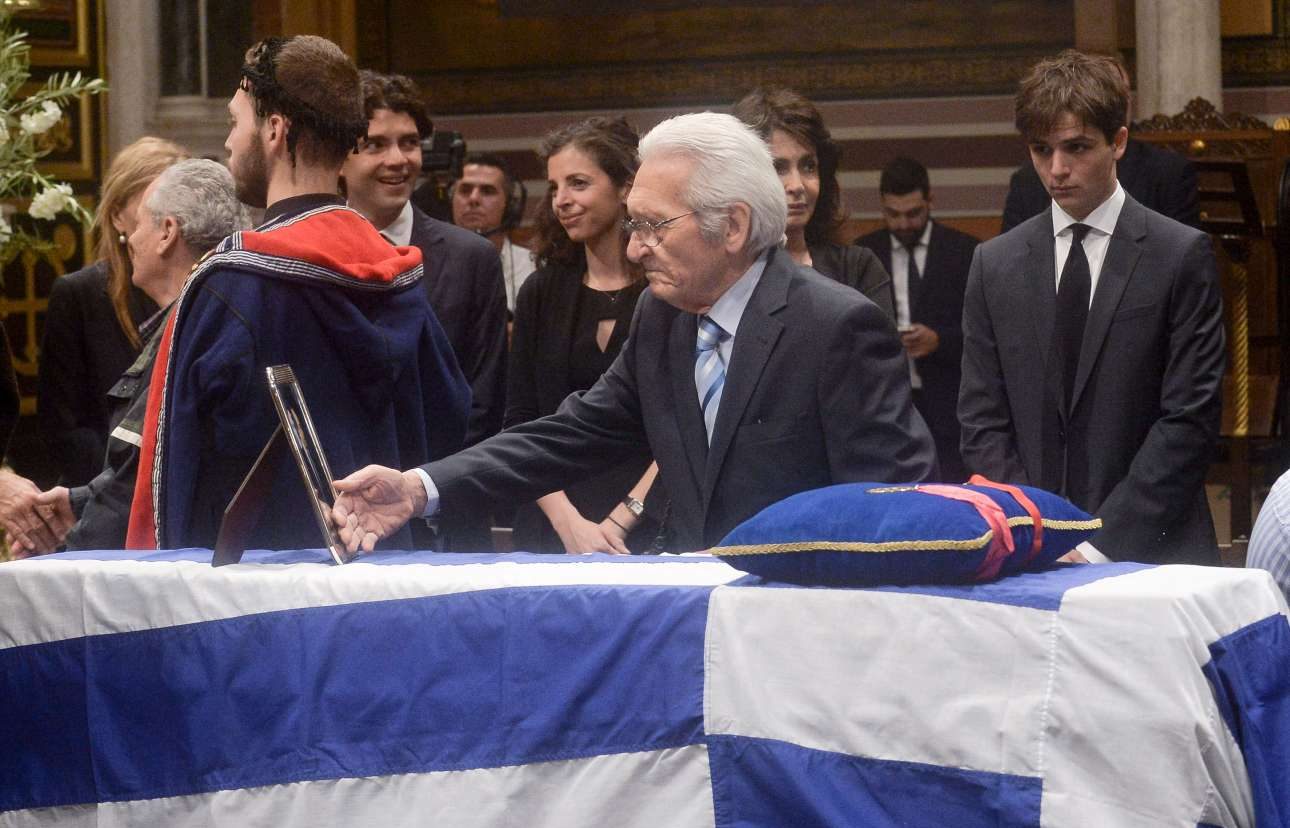 Πλήθος κόσμου έσπευσε από νωρίς το πρωί στη Μητρόπολη Αθηνών για να αποχαιρετήσει τον πρώην Πρωθυπουργό καθώς η σορός του τέθηκε σε λαϊκό προσκύνημα. Σκεπασμένο με την ελληνική σημαία το φέρετρο. Παρούσα από τις 7.00 π.μ. η οικογένεια του εκλιπόντος