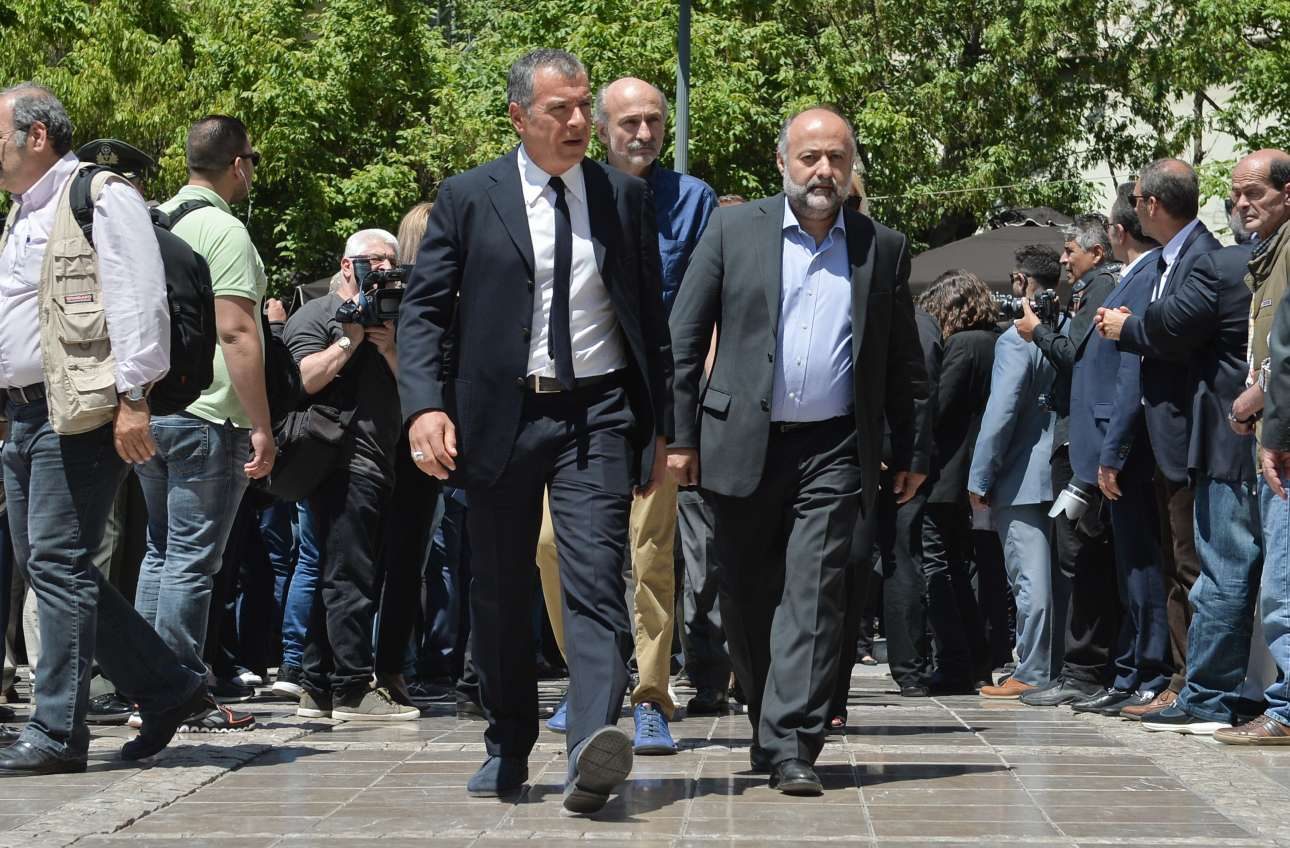 Ο επικεφαλής του Ποταμιού, Σταύρος Θεοδωράκης μαζί με τον εκπρόσωπο Τύπου του κόμματος, Δημήτρη Τσιόδρα