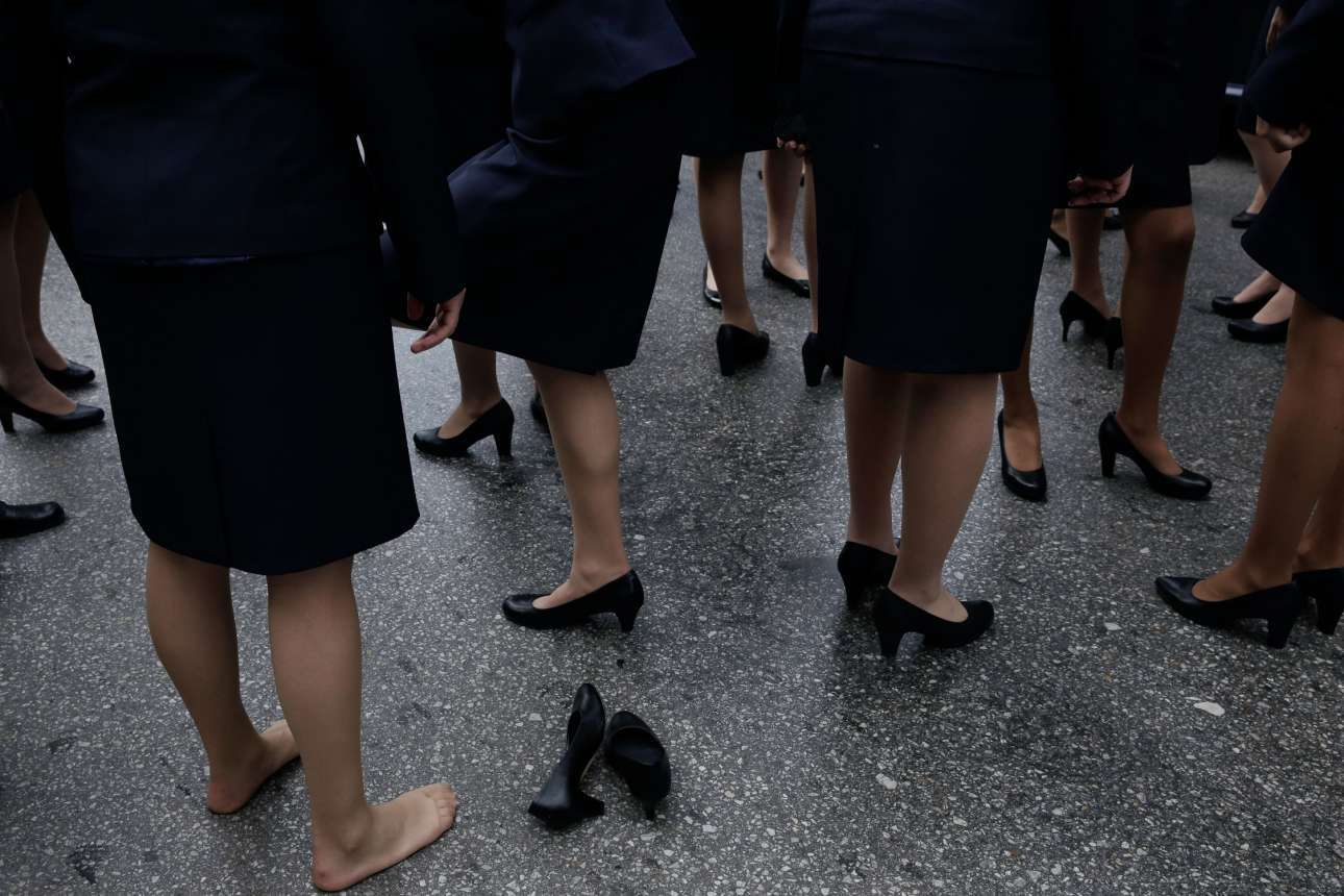 Κάποιες μάλιστα έβγαλαν τις μαύρες γόβες για να αφήσουν λίγο τα πόδια τους να «αναπνεύσουν»