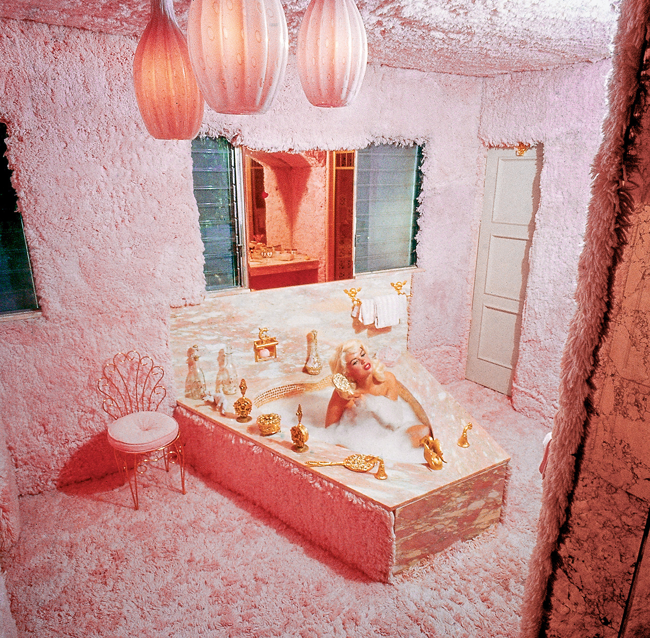 Η Τζέιν Μάνσφιλντ και ο σύζυγός της, ο πρώην Mr. Universe Μίκι Χάργκιτεϊ, έβαλαν τον σκηνογράφο Γκλεν Χολς να μετατρέψει την έπαυλή τους στο Χόλιγουντ σε «ροζ παλάτι». Ροζ χρώματα και παχιά χαλιά αφθονούσαν, ακόμη και στους τοίχους του μπάνιου. Στο δοκίμιο του 1961 με τίτλο «A Daffy Tinge Binge», το Life έγραφε: «Δεν μπορείς να ξεχωρίσεις το πάτωμα από το ταβάνι στο γούνινο ροζ μπάνιο της Τζέιν Μάνσφιλντ. Η κύρια διαφορά είναι ότι η μπανιέρα σε σχήμα καρδιάς βρίσκεται στο πάτωμα». Λος Αντζελες, 1960