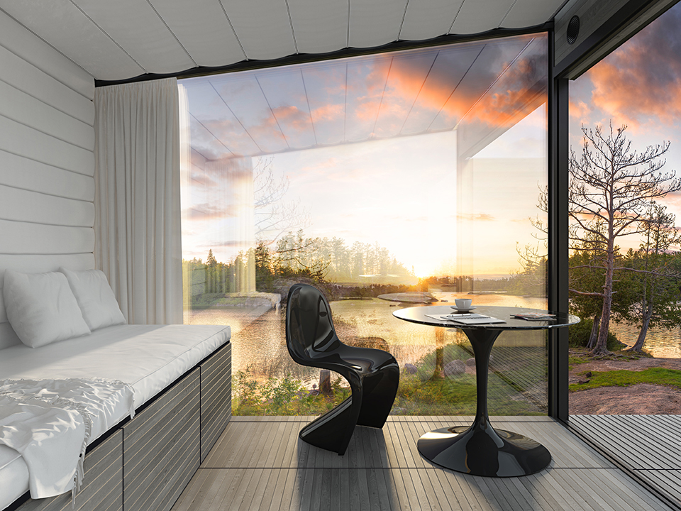 Στο εσωτερικό του θα μπορεί κανείς να κοιμηθεί, να παίξει μουσική, να διαβάσει και να γράψει αλλά και να κάνει ένα ζεστό μπάνιο. Σε κάθε περίπτωση ο χώρος διαμορφώνεται σύμφωνα με τις επιθυμίες του εκάστοτε ιδιοκτήτη