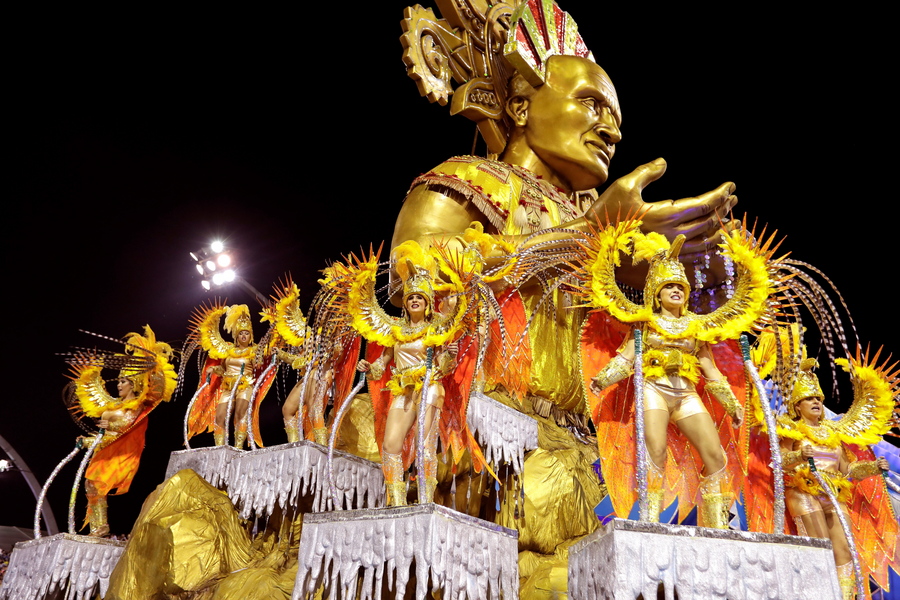 Ενας επιβλητικός χρυσόλευκος αετός διακοσμεί το άρμα της σχολής σάμπα Portela στο Ρίο