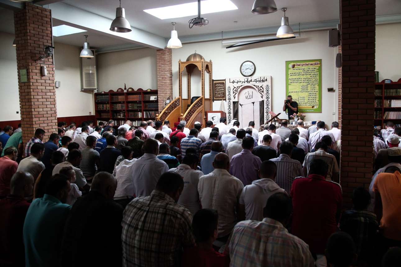 Μουσουλμανικό τέμενος στην Αθήνα δεν υπάρχει ακόμα – παραμένει μια θολή υπόσχεση των ελληνικών κυβερνήσεων. Ετσι οι αμέτρητοι μουσουλμάνοι που ζουν στην πρωτεύουσα καταφεύγουν στα αυτοσχέδια τζαμιά, όπως αυτό – το μεγαλύτερο ίσως – στο Μοσχάτο. Το πρωινό της Τετάρτης 6 Ιουλίου, σηματοδότησε το τέλος του ιερού μήνα του Ραμαζανιού που οδήγησε πολλούς μουσουλμάνους στους ιδιότυπους αυτούς χώρους για να προσευχηθούν