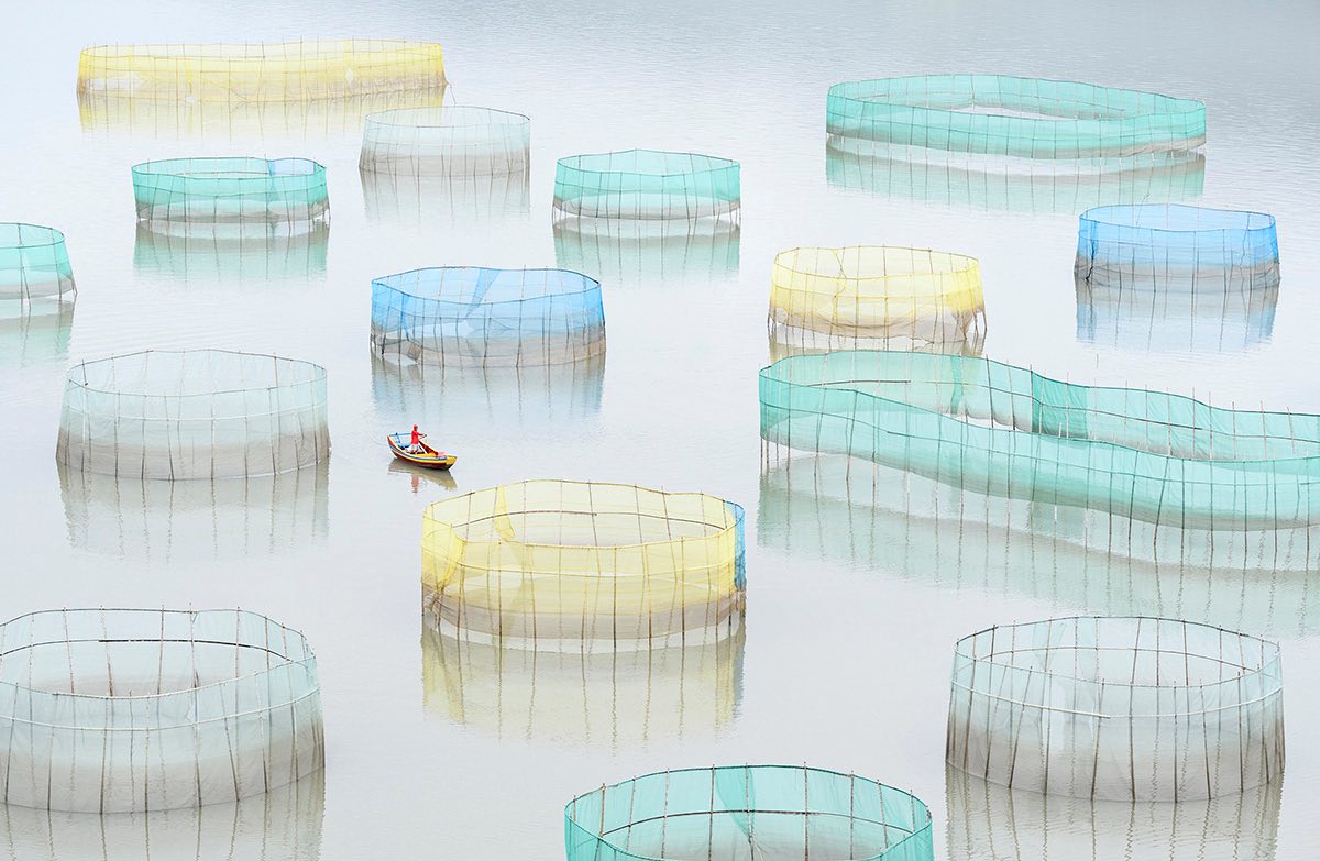 Eιδική Μνεία, κατηγορία Ανθρωπότητα: Ενας κινέζος αγρότης επιθεωρεί τα δίχτυα της μεγάλης καλλιέργειας καβουριών στην επαρχία Φουτζιάν