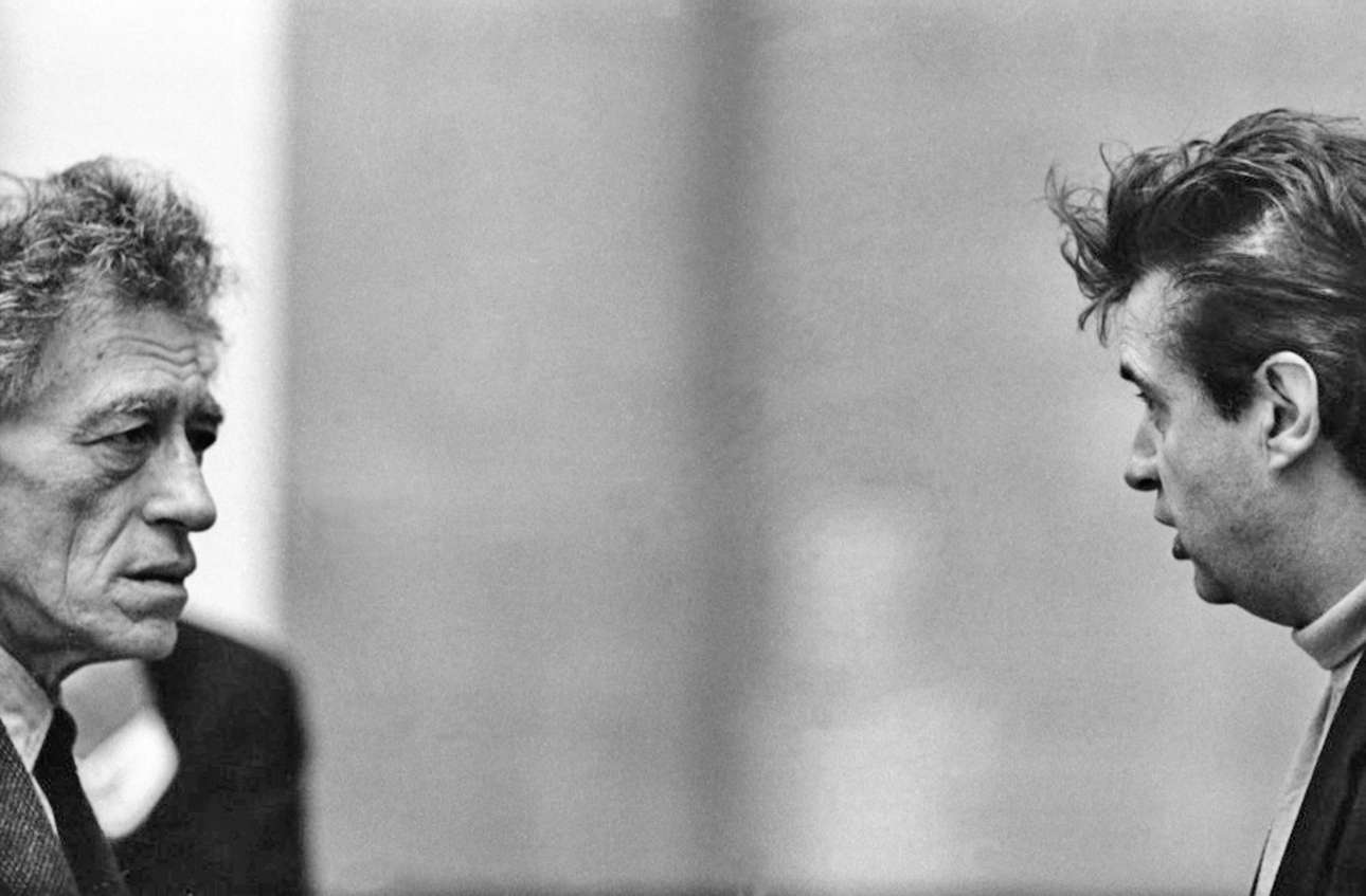 Ο ζωγράφος Μπέικον (δεξιά) επισκέπτεται τον γλύπτη Τζακομέτι στο μουσείο Tate Modern του Λονδίνου, όπου ο δεύτερος στήνει την αναδρομική έκθεσή του, το 1965