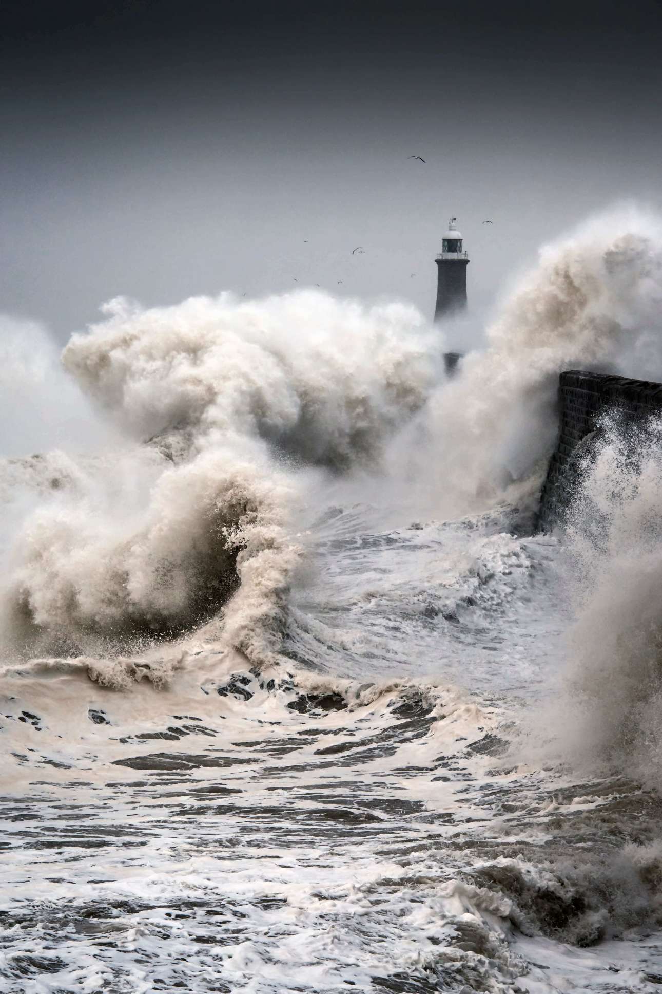 Επαινος, κατηγορία «Θέα από την ακτή». Οι φάροι πρωταγωνίστησαν στον φετινό διαγωνισμό «Ultimate sea view». Στην παραπάνω φωτογραφία, γιγαντιαία κύματα σκάνε πάνω στον φάρο του Τάινμουθ