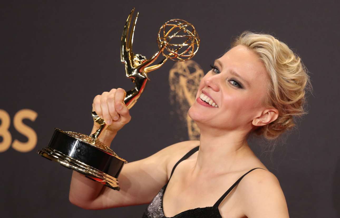 Η κωμική ηθοποιός Κέιτ ΜακΚίνον κρατά περήφανα το βραβείο που της απονεμήθηκε για την μοναδική συνεισφορά της στην εκπομπή «Saturday Night Live». Ηταν όντως καταπληκτική ως Χίλαρι Κλίντον αλλά και ως Σον Σπάισερ. To «SNL» απέσπασε συνολικά εννέα βραβεία!