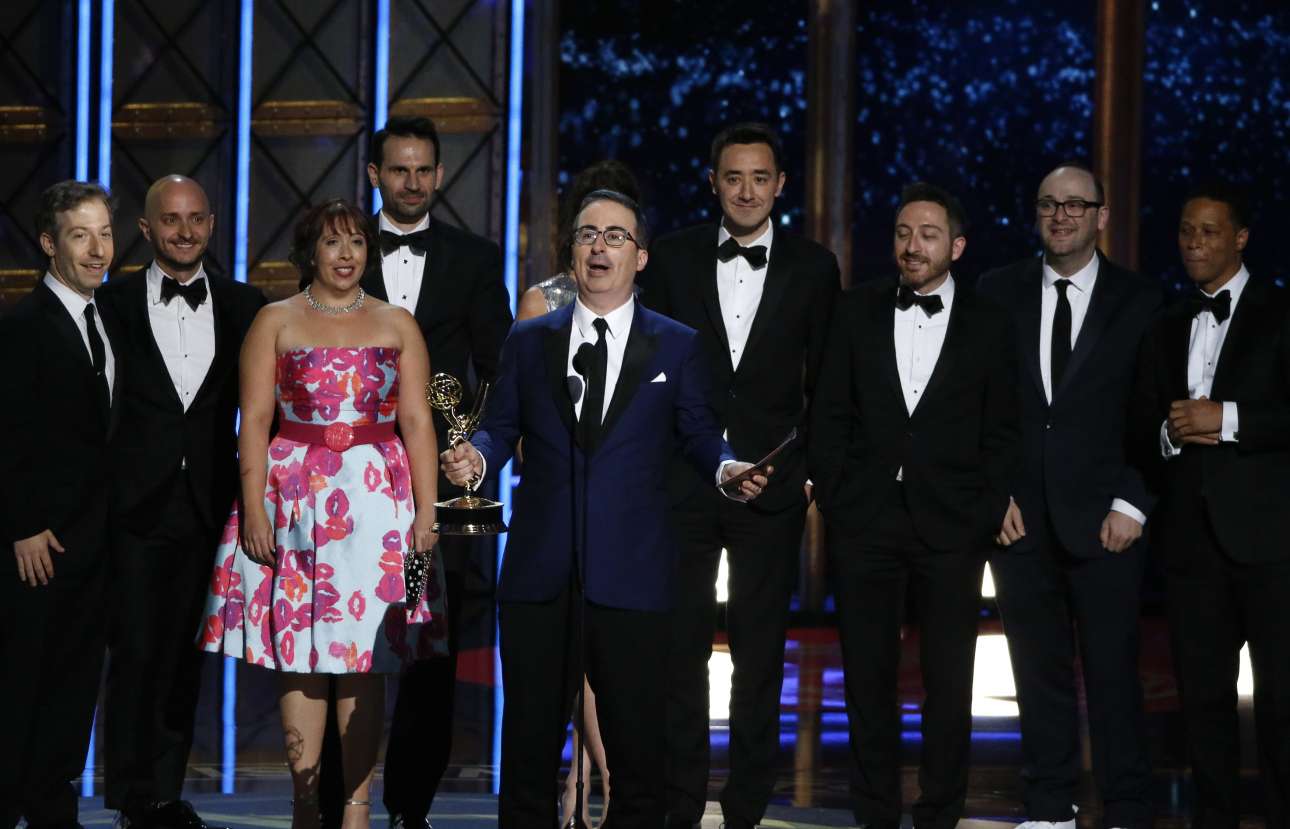 O Τζον Ολιβερ και οι υπόλοιποι συντελεστές του «Last Week Tonight with John Oliver» με το βραβείο του καλύτερου τοκ σόου ποικίλης ύλης