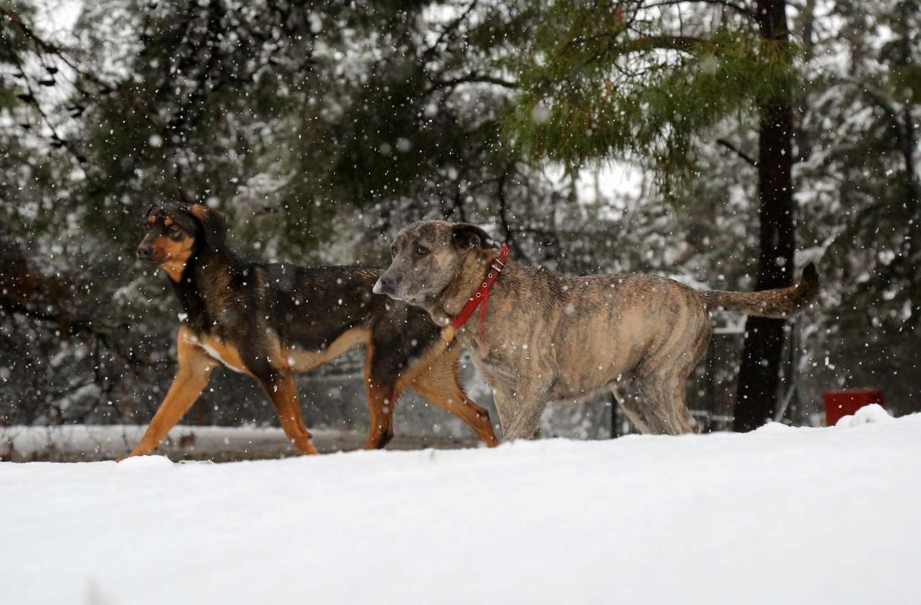 Ηράκλειο Κρήτης/ Χειμερινή βόλτα για τα σκυλιά που δεν δείχνουν να προβληματίζονται από το χιόνι που καλύπτει τα πάντα