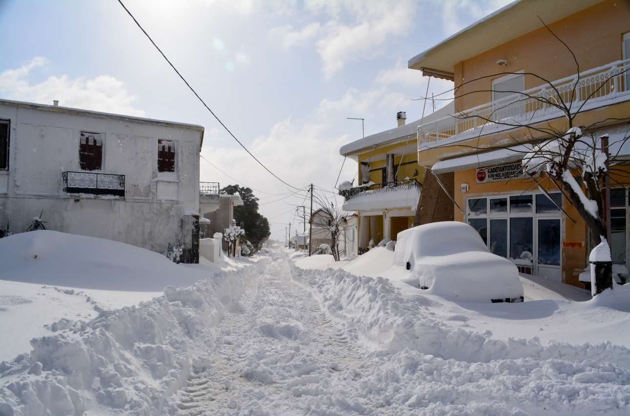 Οξύλιθος, Εύβοια/ Οι δρόμοι και τα αυτοκίνητα είναι κυριολεκτικά θαμμένα κάτω από στρώσεις χιονιού