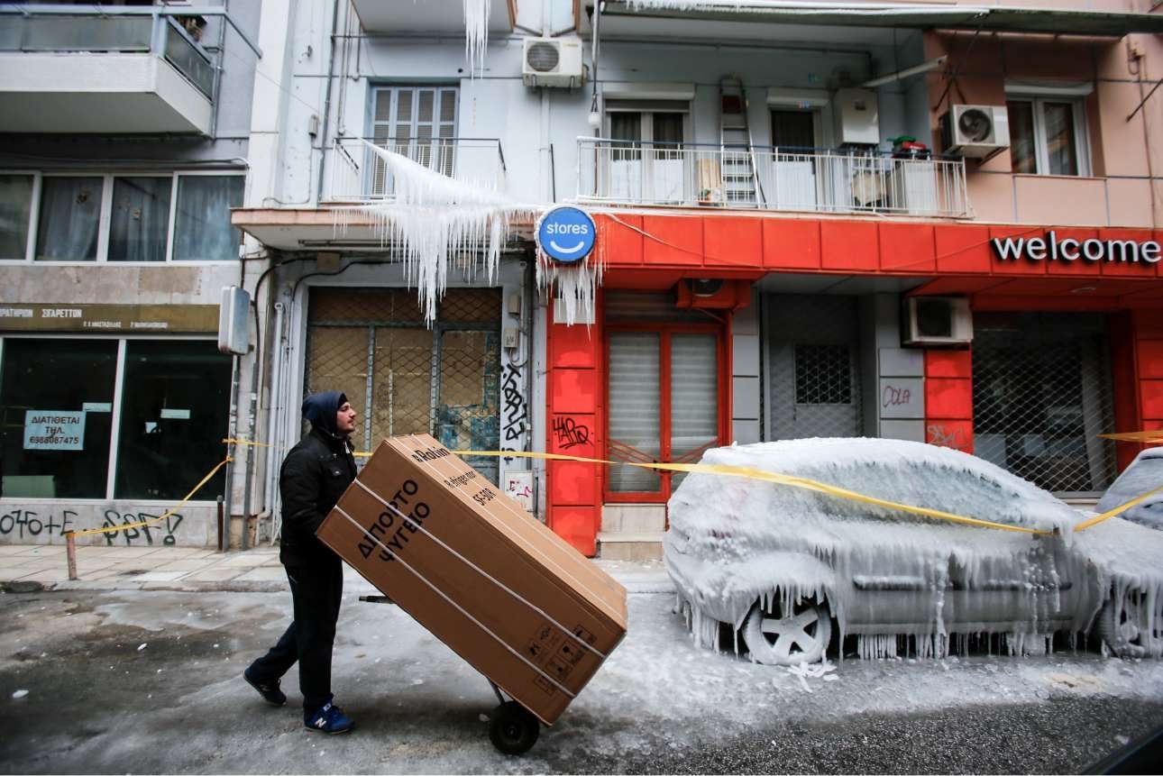 Οι δρόμοι στην Θεσσαλονίκη έπιασαν χιόνι και οι περαστικοί έπρεπε να προσέχουν σε κάθε τους βήμα