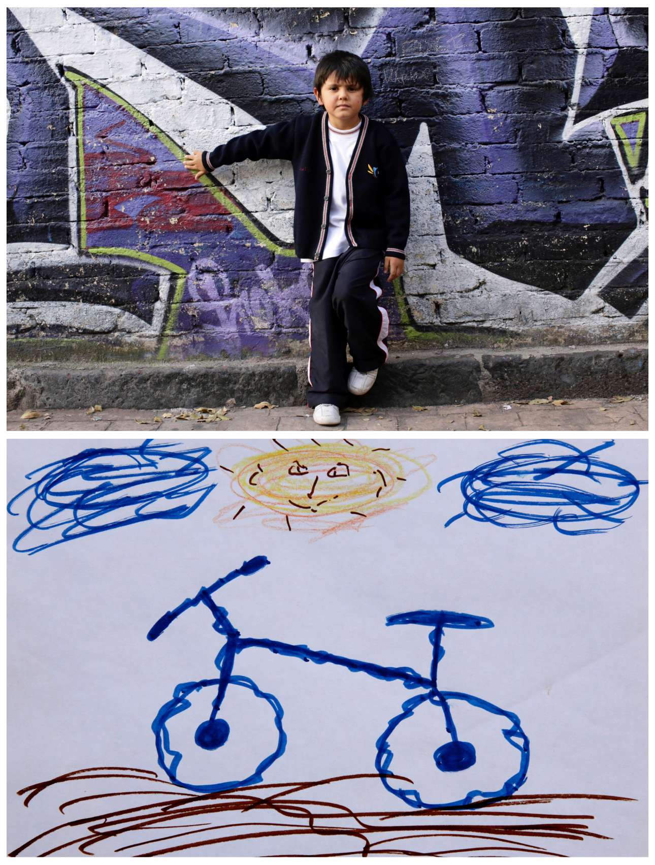 Ο εξάχρονος Ματίας ποζάρει έξω από το σχολείο του στο Μεξικό. Από τον Αγιο Βασίλη θέλει ένα ποδήλατο, σαν αυτό που έχει ζωγραφίσει