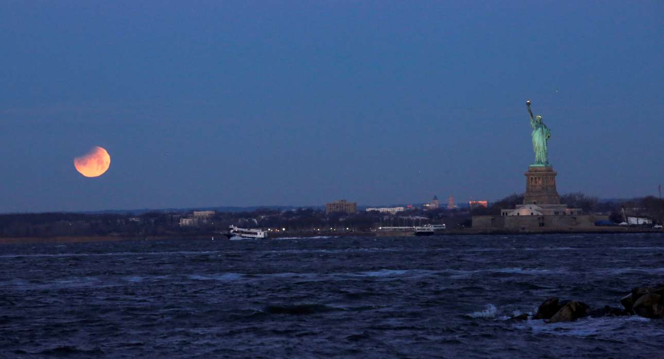 Τυχεροί οι επιβάτες του Στέιτεν Αϊλαντ φέρι στη Νέα Υόρκη που είχαν την ευκαιρία να απολαύσουν το μαγικό θέαμα από τη θάλασσα