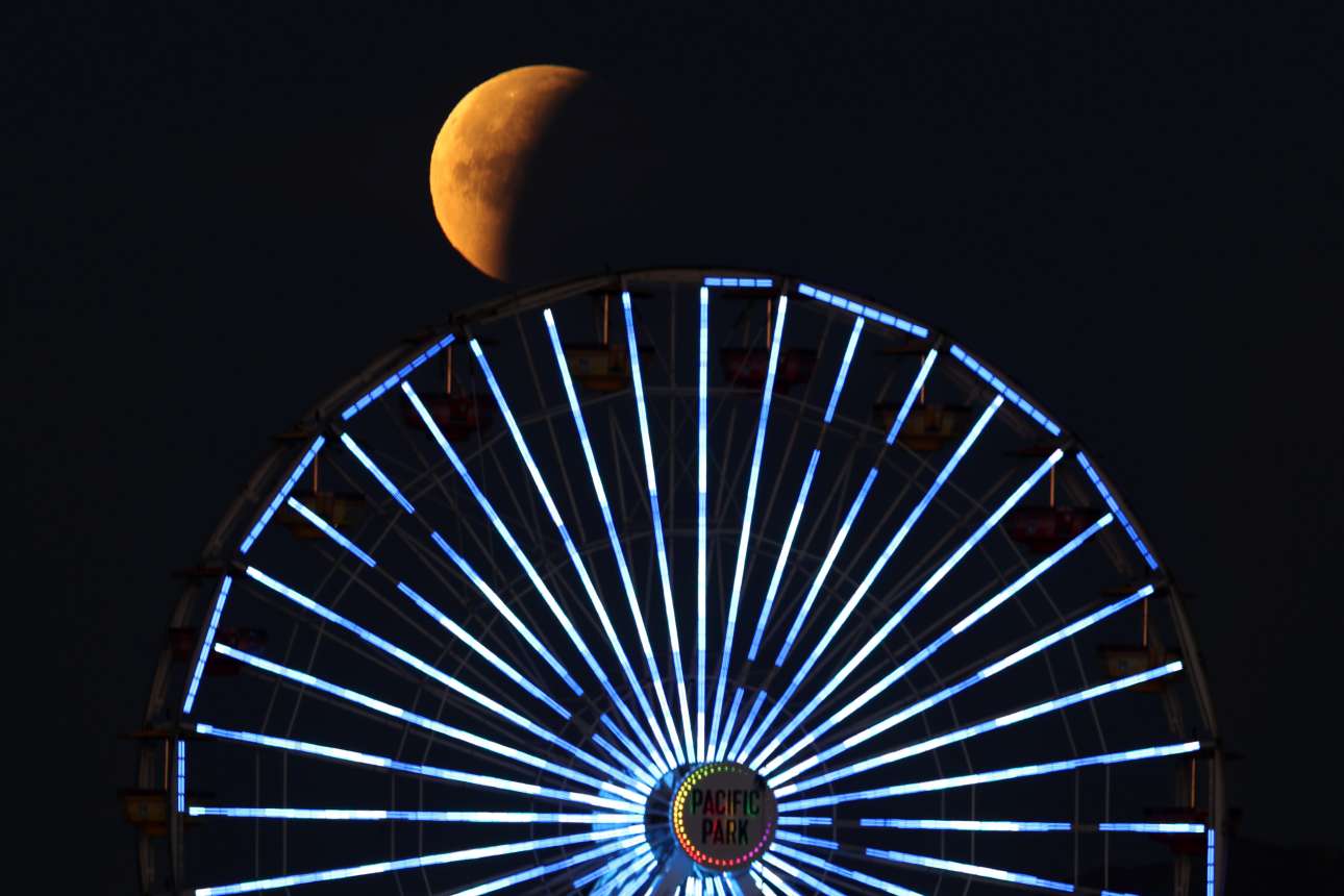 Η υπερ-Σελήνη ξεπροβάλει πίσω από τη ρόδα του λούνα παρκ της Σάντα Μόνικα στην Καλιφόρνια