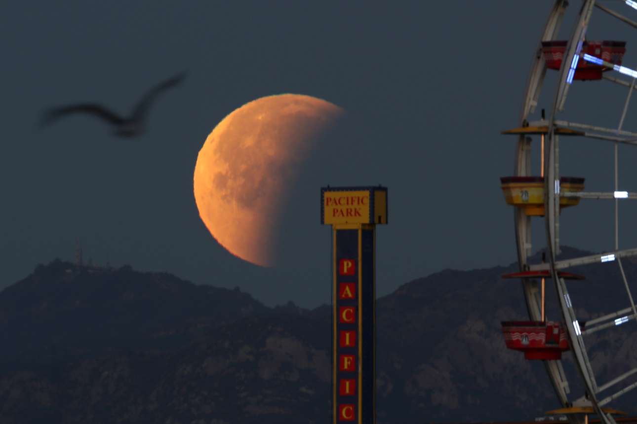 Η δεύτερη εντυπωσιακή πανσέληνος του Ιανουαρίου (η πρώτη πανσέληνος έγινε τη φετινή Πρωτοχρονιά) πάνω από λούνα παρκ της Σάντα Μόνικα