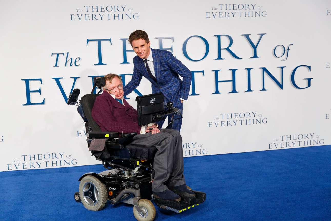 Στην πρεμιέρα της ταινίας «Η Θεωρία των Πάντων» στο Λονδίνο το 2014, με τον ηθοποιό Εντι Ρεντμέιν. «Εμοιαζε με εμένα, συμπεριφερόταν σαν και εμένα και είχε την αίσθηση του χιούμορ μου» έγραψε ο Χόκινγκ για τον Ρεντμέιν, ο οποίος τον ενσάρκωσε στο φιλμ και βραβεύτηκε με Οσκαρ για την ερμηνεία του