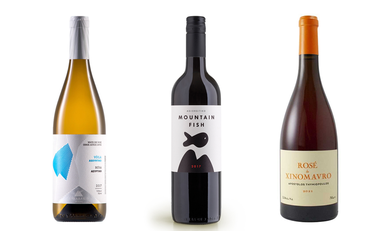 «Οινοποιείο Λυραράκης Βόιλα Ασύρτικο 2020/21», από παλιά αμπέλια στη Σητεία Κρήτης (13,5%) Λευκό κρασί ξηρό, φρουτώδες αλλά και ορυκτό, με κοφτερή οξύτητα και μια νότα μιμόζας κι αλατιού με λεμονάτη επίγευση. Συνδυάζεται με ψάρια και θαλασσινά, λεμονάτα πιάτα, τηγανιτά μεζεδάκια, λευκά αρμυρά τυριά, ριζότο, πουλερικά και σαλάτες