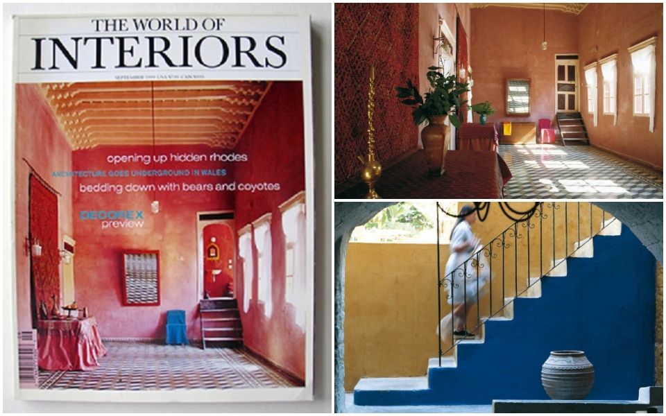 Αριστερά το εξώφυλλο του διάσημου περιοδικού και δεξιά εικόνες κοινόχρηστων χώρων του boutique hotel