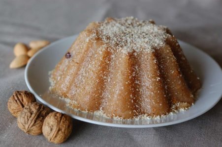 Σιμιγδαλένιος χαλβάς με χυμό εσπεριδοειδών και κακάο