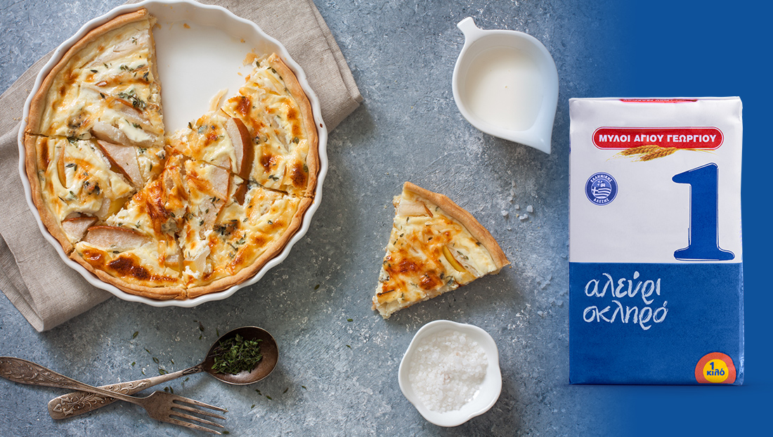 Για το φετινό γιορτινό τραπέζι λοιπόν διαλέξαμε να σερβίρουμε μια φίνα τάρτα με αχλάδια, ροκφόρ και καρύδια και βάση από ζύμη μπριζέ με αλεύρι Νο 1 Μύλοι Αγίου Γεωργίου. Γιατί Χριστούγεννα δεν γίνονται χωρίς κάλαντα, χωρίς γλυκά και μαγειρέματα, απλά Χριστούγεννα δεν γίνονται χωρίς τους Μύλους Αγίου Γεωργίου!