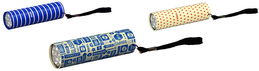 Ισχυρός κομψός φακός με 9 LEDs σε χαρούμενα σχέδια και χρώματα που θα αποτελέσει ένα ξεχωριστό και πρωτότυπο δώρο! Συμπεριλαμβάνει 3 μπαταρίες ΑΑΑ.