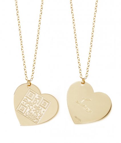Αν θέλετε το δώρο σας να κρύβει μια υπόσχεση παντοτινής αγάπης αλλά και να συνδυάσετε την αγάπη σας για οτιδήποτε τεχνολογικό, σας προτείνουμε το κολιέ Qrcode. Το κολιέ αυτό κρύβει στον ανάγλυφο QR κωδικό του το μήνυμα «η αγάπη κατακτά τα πάντα». Και για να το διαβάσει θα πρέπει να το σαρώσει με το κινητό της. Σχεδιασμένο από την Miriam Merenfeld Jewelry, θα το βρείτε εδώ από 139 έως 170 ευρώ ανάλογα με τι θα επιλέξετε να είναι, ασημένιο ή χρυσό.