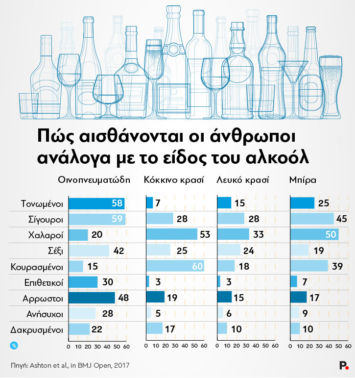 Η ίδια ομάδα ανθρώπων ήταν επίσης πιο πιθανό να αναφέρει ότι αισθάνθηκε όλα τα θετικά συναισθήματα όταν έπιναν. Αυτό μοιάζει με αντίφαση, αναφέρει το Quartz , είναι όμως πιθανό να υποδηλώνει ότι είναι άνθρωποι που τείνουν να χρησιμοποιούν το ποτό για να νιώσουν πιο έντονα συναισθήματα σε κάθε περίπτωση, από το να γιορτάζουν και να προσπαθούν να αισθανθούν καλύτερα μέχρι να βυθιστούν στον πόνο.