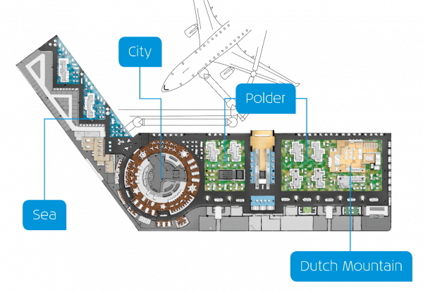 Το εκτός Σένγκεν Crown Lounge της KLM θα έχει νέα διακόσμηση που θα προσφέρει μια ολοκληρωμένη, νέα εμπειρία. Η KLM δημιούργησε διάφορες περιοχές για να ικανοποιήσει τις διαφορετικές ανάγκες των πελατών: τη ζώνη «Polder» όπου μπορεί κανείς να εργαστεί, τη ζώνη «Sea» για να χαλαρώσει, τη ζώνη «City» για φαγητό και ποτό, την περιοχή «Dutch Mountain» για ψυχαγωγία και τη ζώνη «Sky» για fine dining.
