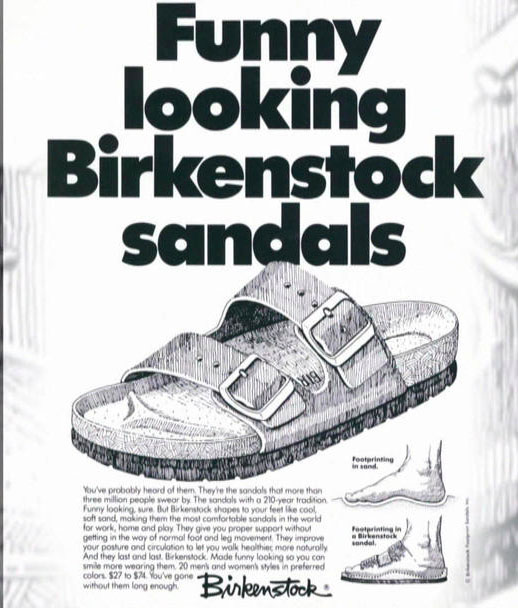 Το 1966 τα γερμανικά σανδάλια διέσχισαν τον Ατλαντικό χάρη στη Μάργκοτ Φρέιζερ, μια Αμερικανίδα γερμανικής καταγωγής, η οποία σε ένα ταξίδι της στη Γερμανία ενθουσιάστηκε όταν ανακάλυψε πόσο άνετα ήταν. Και τότε γεννήθηκε ένα mega-brand.