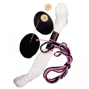 Tο κουτί περιέχει: • Δύο γάντια, βαμβάκι, ξύλινα κουμπιά, χρωματιστή τσόχα, χάντρες, νήμα και μια βελόνα • Απλές και λεπτομερείς οδηγίες