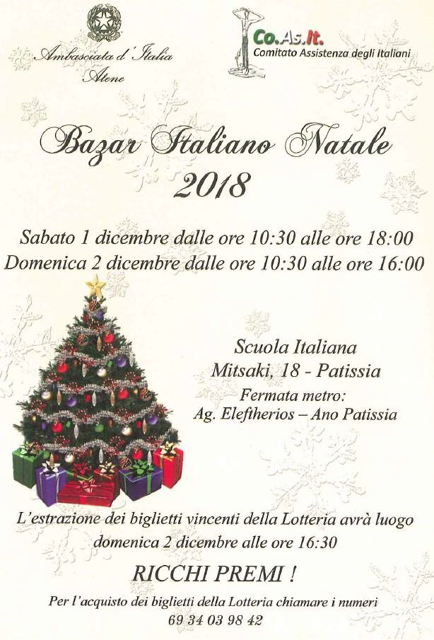 Αυτό το χριστουγεννιάτικο μπαζάρ είναι η κύρια πηγή χρηματοδότησης για τις δραστηριότητες του CO.AS.IT., αλλά και μια πολυαναμενόμενη ετήσια εκδήλωση που συμβάλλει στην προώθηση του «Made in Italy» και ως τέτοια εκτιμάται τόσο από τους Έλληνες όσο και από τους Ιταλούς που ζουν στην Ελλάδα.