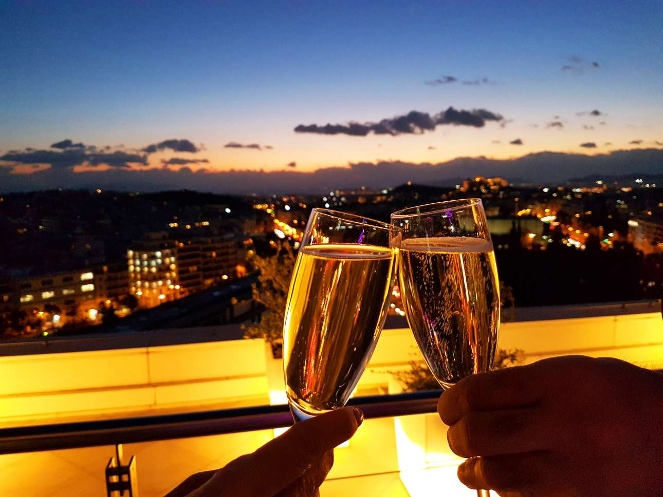Απολαύστε το ποτό σας και την υπέροχη θέα της Αθήνας από ψηλά από το μπαλκόνι του δωματίου σας στο Hilton Αθηνών