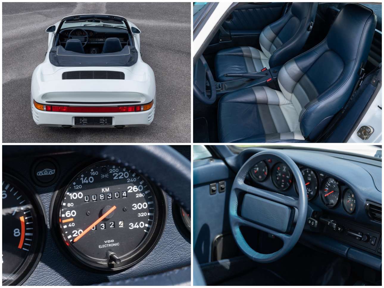 Λέγεται επίσης πως η ποιότητα της δουλειάς που έριξε στο λευκό 959 που βλέπετε έφτασε τα επίπεδα του εργοστασίου. Μάλιστα, για να έχει περισσότερες επιλογές, το αυτοκίνητο είναι εξοπλισμένο είτε με ηλεκτρικά ελεγχόμενη μαλακή οροφή ή με αφαιρούμενο hard top.