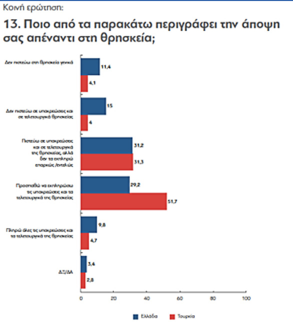 10. Η θρησκεία παραμένει καταλυτικό σημείο ταυτοτικής αναφοράς σε Ελλάδα και Τουρκία και επηρεάζει καίρια και τις προσλαμβάνουσες παραστάσεις για τη γείτονα.
