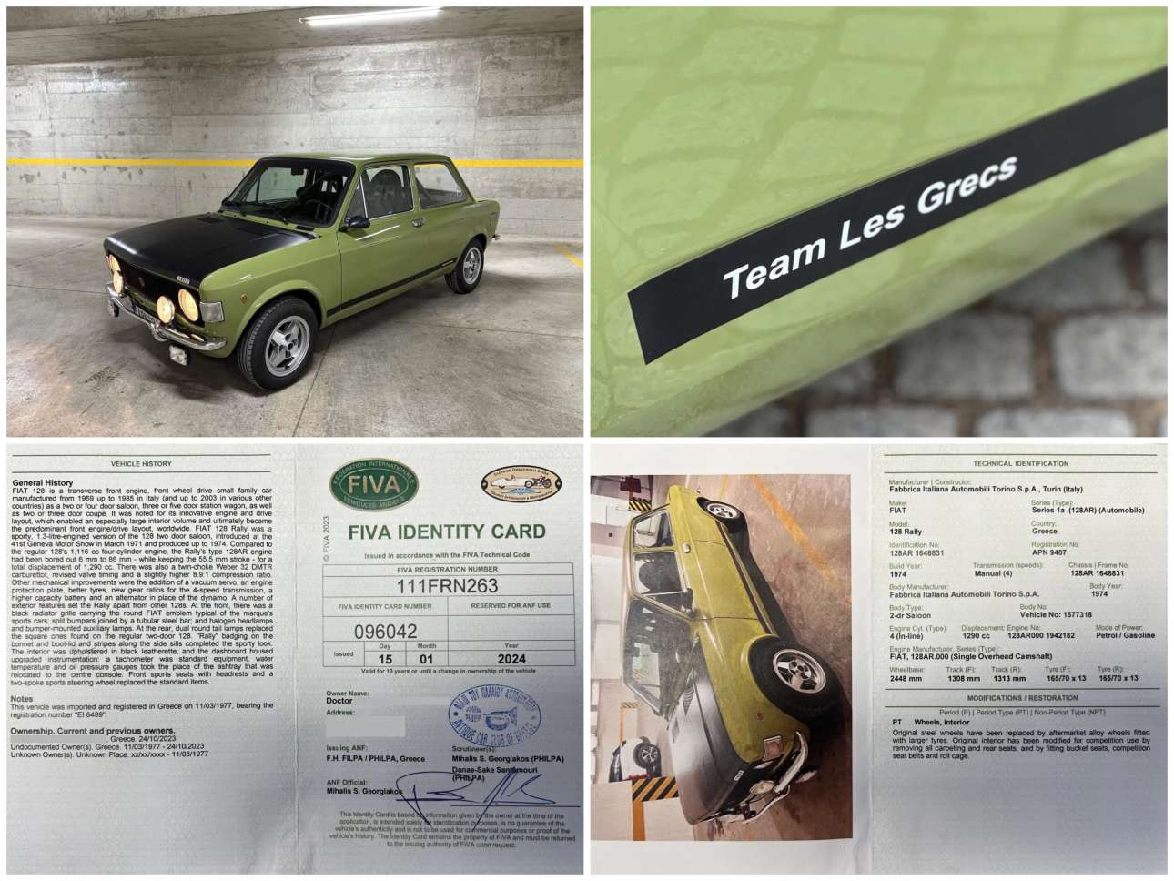 Σύμφωνα με την καταχώρηση, αποκτήθηκε από τον πωλητή το 2023 και το FIAT 128 Rally συμμετείχε στο «Tour de Peloponnese» το 2024 ενώ έχει κάνει αλλαγές υγρών και αντικατάσταση μπουζί στο πλαίσιο της προετοιμασίας για την πώλησή του. Αυτό το 128 Rally διαθέτει ταυτότητα FIVA και ελληνική άδεια κυκλοφορίας.