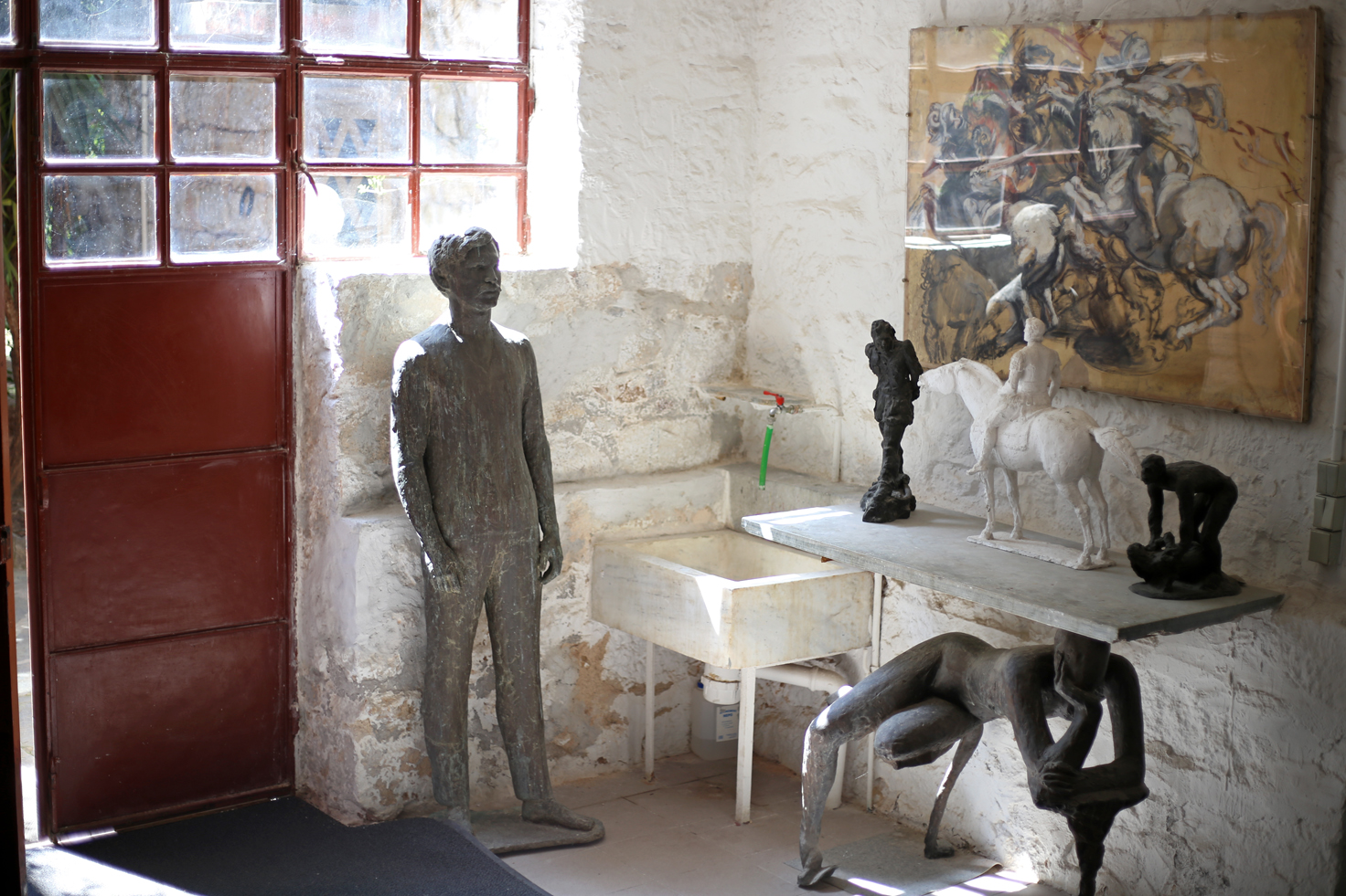 Στρατηγικά χτισμένο, ώστε να μπαίνει το «σωστό, καθαρό» φως από τον Βορρά και να αναδεικνύει τα γλυπτά του κήπου αλλά και να γεμίζει με ήλιο και έμπνευση τους χώρους του εργαστηρίου, αυτό το καλλιτεχνικό άντρο σε σαγηνεύει από πολύ νωρίς. Το βλέμμα σου πέφτει σε γλυπτά που αγκαλιάζουν όλη την πορεία του καλλιτέχνη, για αυτό και είναι έκδηλη η ποικιλία στις μορφές και στις επιρροές. Κάποια παραπέμπουν σε Τζακομέτι, κάποια άλλα σε Μπρανκούζι, άλλα είναι πιο πριμιτίφ, άλλα πιο κλασικά. Μία ευρεία γκάμα, ενός δημιουργού που έζησε σχεδόν έναν αιώνα και σαν αχόρταγο παιδί, έως το τέλος της ζωής του ήθελε να γνωρίσει και να πειραματιστεί με τα πάντα.