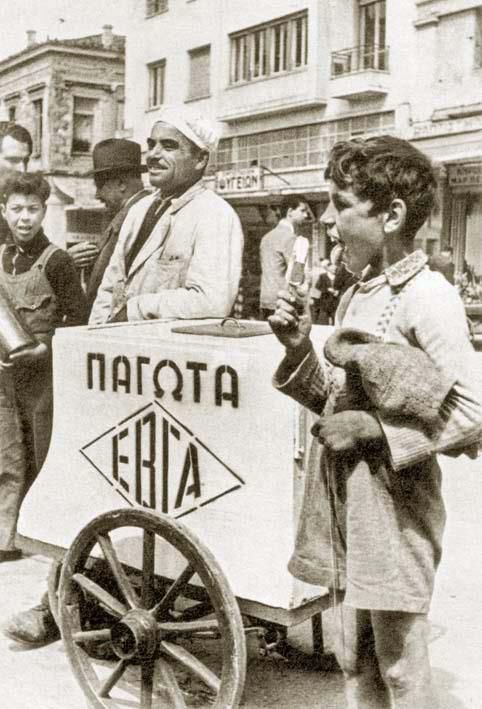 Στο μεταξύ, όμως, το 1936 έφερε στην αγορά και μία μικρή επανάσταση. Το παγωτό ξυλάκι. Ήτοι παγωτό κρέμα / βανίλια – αρχικά – καρφωμένο προκλητικά και χρηστικά σε ένα ξύλινο ραβδάκι. Οι αδελφοί Σουραπά είχαν φέρει στην Ελλάδα εκείνο που είχε ξεκινήσει να σερβίρει – σε εκδοχή παγωμένου ανθρακούχου νερού, με άρωμα και γεύση – σε δρόμους του Σαν Φραντσίσκο μόλις το 1922 ο 28χρονος τότε Φρανκ Έπερσον. Ο οποίος ως 11χρονος θεωρείται ότι ήταν εκείνος που ανακάλυψε το αμερικανικό Popsicle, ξεχνώντας ένα ξύλινο ραβδάκι μέσα σε ένα ποτήρι με αναψυκτικό, μια παγωμένη νύχτα του 1905. Το ξυλάκι της ΕΒΓΑ, που στη συνέχεια… βρήκε και την επικάλυψή του στη σοκολάτα, ήταν το πρώτο τυποποιημένο παγωτό στην Ελλάδα, με την έγκριση του Γενικού Χημείου του Κράτους. Καθώς το 1936 δεν υπήρχαν ψυγεία για τα περιζήτητα ξυλάκια επιστρατεύτηκαν πλανόδιοι πωλητές και τρίκυκλα καρότσια με πάγο – η απαρχή για το επάγγελμα του παγωτατζή, που φορούσε λευκή ποδιά και σκούφο και κυκλοφορούσε στις γειτονιές.
