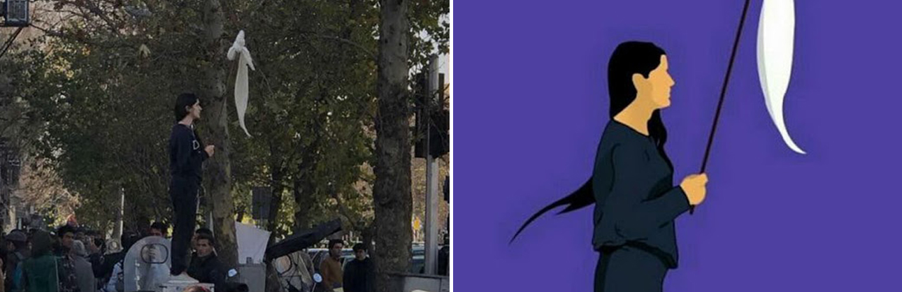 «Υα Roussari ya Toussari». «Ή μαντίλι στο κεφάλι ή χτύπημα στο κεφάλι». Το όνομα της θαρραλέας κοπέλας με τα μακριά μαύρα λυτά μαλλιά που στέκεται όρθια πάνω σε έναν κάδο και ανεμίζει το δικό της λευκό «roussari» σε μία από τις φωτογραφίες – σύμβολο των αιματηρών ταραχών που μαίνονταν επί μια εβδομάδα στο Ιράν δεν είναι γνωστό. Αλλά είναι γνωστό το σύνθημα των ισλαμιστών μελών της Χεζμπολάχ, του «Κόμματος του Θεού», του Ιράν, οι οποίοι είχαν στο στόχαστρό τους τις γυναίκες που μετά την Ισλαμική Επανάσταση του Αγιατολάχ Χομεϊνί το 1979, τολμούσαν ακόμα να μην ακολουθούν τη «υπόδειξη» (έως ότου μετατράπηκε σε νόμο) να καλύπτουν το κεφάλι τους.