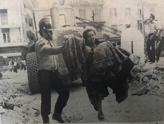 Ενα μεσημέρι από εκείνα των αρχών του Ιουνίου, τρώγαμε στην ιστορική «Πέρδικα», το εστιατόριο στη Βασιλίσσης Σοφίας τότε (σημερινή Εθνικής Αμύνης) ψηλά, κοντά στο Σιντριβάνι, μερικές δεκάδες μέτρα από το ξενοδοχείο ABC. Έκανε θυμάμαι, έναν γερό σεισμό και τα γκαρσόνια, με τον πανικό στο βλέμμα τους, μας είπαν «βγείτε αμέσως έξω». Μέσα και έξω από τα κτίρια, πηγαίναμε συνεχώς…